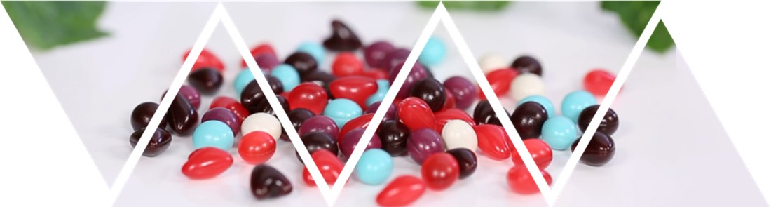1、產品形態均為糖/凝膠混合制成的外皮與所其包裹的餡心組成,清甜可口,具有夾心凝膠糖果糖果的甜美與咀嚼口感,顏色和形狀皆可多元化。
