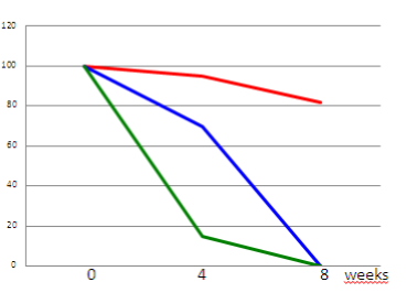 結論:本實驗在有氧、40℃環境下進行的原料穩定性比較,結果顯示8周后普正使用的原料穩定性最強,仍然有高達80%的蝦青素含量。