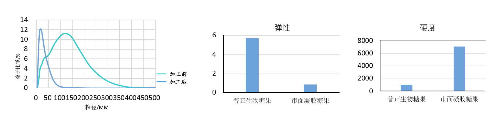 (一)對內(nèi)容物進(jìn)行精細(xì)化加工,使內(nèi)容物粒徑從數(shù)百微米到數(shù)十微米,凝膠糖果咀嚼起來口感更細(xì)膩軟糯。