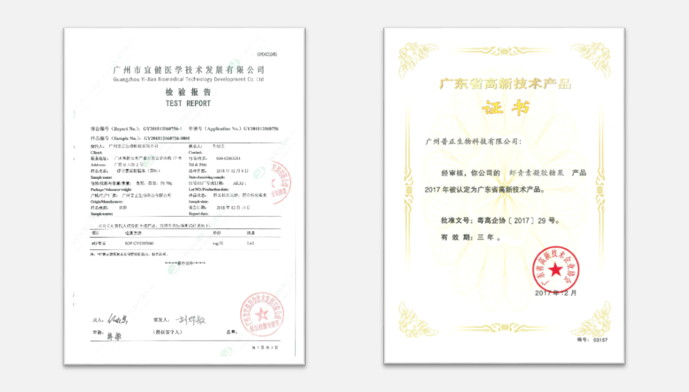 蝦青素凝膠糖果于2017年12月被認定為廣東省高新技術產品。