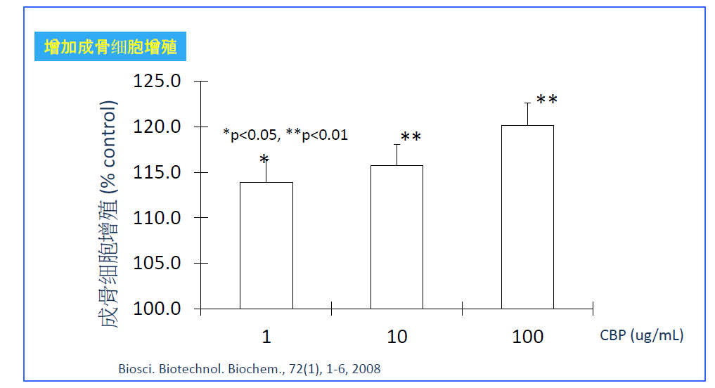 注:實驗過程中,添加CBP越多,成骨細胞增殖越多。