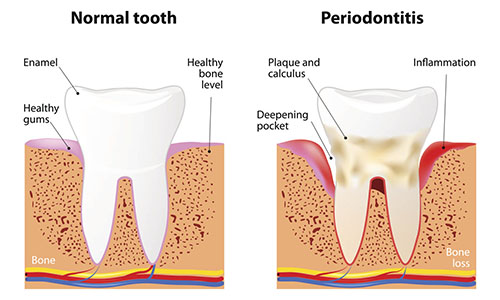 主要臨床表現是牙齦炎癥、出血、牙周袋形成、牙槽骨吸收、牙槽骨高度降低、牙齒松動、移位、咀嚼無力,嚴重者牙齒可自行脫落或者導致牙齒的拔除。