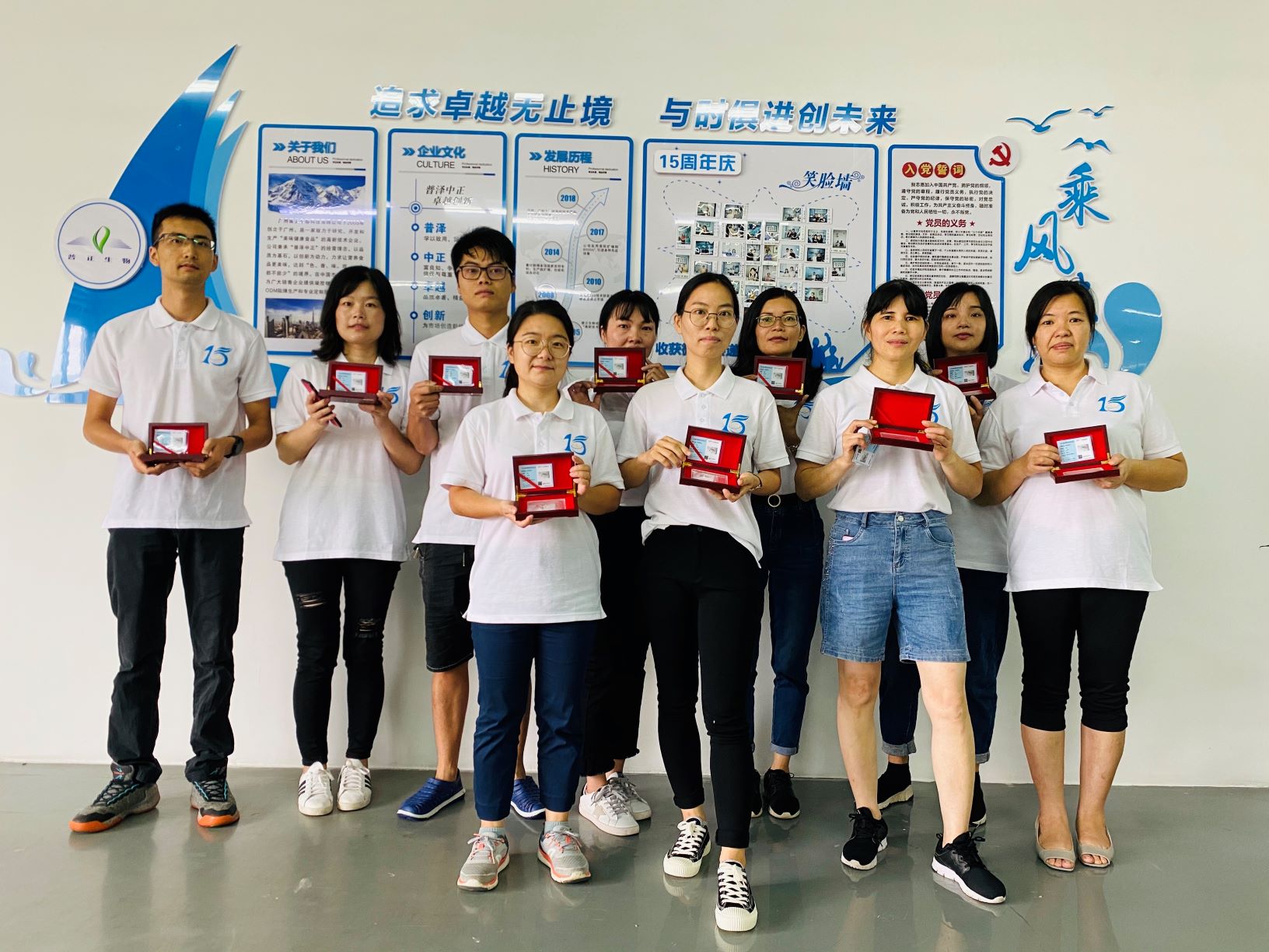 接下來就是為我們的老員工頒發長期服務獎。正是因為有他們一如既往的辛勤付出,普正生物才有了今天引以為傲的成就!