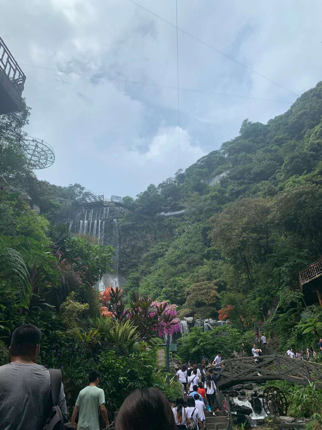 第一站是玻璃大峽谷。小伙伴們一路浩浩蕩蕩,沿著林間小路拾級而上,這里樹木郁郁蔥蔥,層層疊疊的深綠淺綠令人應接不暇,再加上無數白練飛漱其間,水霧彌漫,清幽醉人。帥哥美女們一路談笑風生,一路擺拍錄影,想把滿山的美景和此時此刻的好心情定格帶回家!