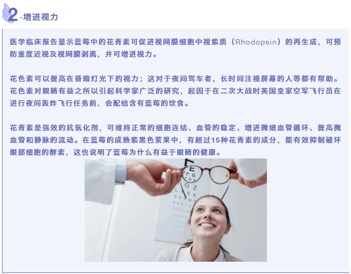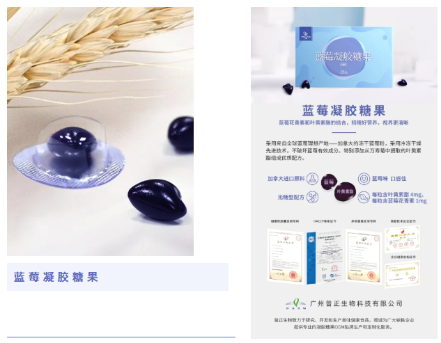 藍莓被譽為“水果皇后”和“漿果之王”。美國 Tufts 大學的分析顯示,在40種具有抗氧化效力的蔬菜和水果中,藍莓的花青素含量排名靠前。以加拿大進口藍莓粉為原料制成的凝膠糖果,散發著獨特的天然藍莓果香,可口美味,是非常好的攝取花青素的途徑。