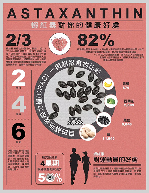 早在2001年,日本早稻田大學就曾經做過研究,在146位運動后出現肌肉關節酸痛的人身上測試蝦青素的作用,結果顯示,這146位人服用蝦青素營養添加劑三個月之后,其中的128位表示癥狀的確得到了改善。更有意思的是,其中的8位經常運動的老人家反饋最為積極,這印證了運動得越多,蝦青素產生的效用就越顯著。