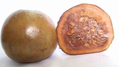 寶樂果粉取自寶樂果,也叫博羅霍,西班牙語為Borojo。它是一種生長在南美洲厄瓜多爾和哥倫比亞熱帶雨林地區的水果。看樣子么,其貌不揚,和番石榴差不多模樣,不過個頭稍大。直徑達7-12cm,還沒有成熟時呈綠色,成熟時轉為茶褐色,重量有五六個蘋果那么重,果肉柔軟多籽。味道酸澀粘稠。