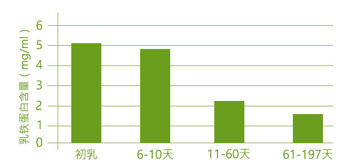 研究表明,作為母乳的重要組成部分,乳鐵蛋白在人初乳中可達6-14mg/ml,而正常母乳中1-3.2mg/ml,牛乳中含量僅0.02—0.35mg/ml。